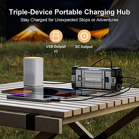 AVAPOW 3000A 12V Peak 23800mAh Battery Jump Starter (Up to 8L Gas 8L Diesel Engine) $26.39 + Free Shipping