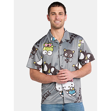 Hello Kitty and Friends Men's and Big Men's Graphic Print Mesh Shirt with Short Sleeves $8.39