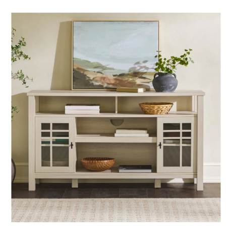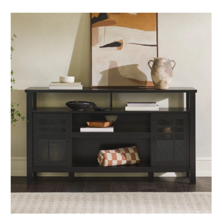 Walker Edison Transitional Wood Glass Door Storage Sideboard 58" - Black or Ivory Oak - $57.99