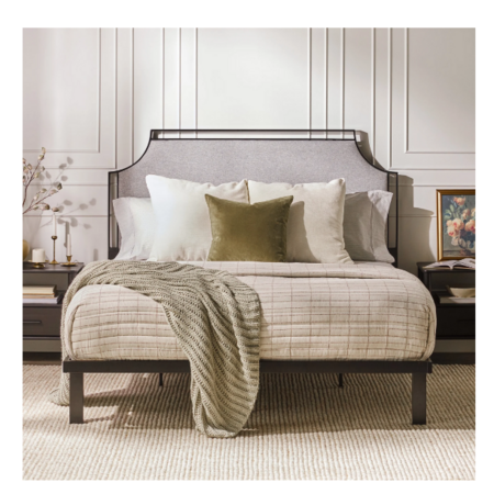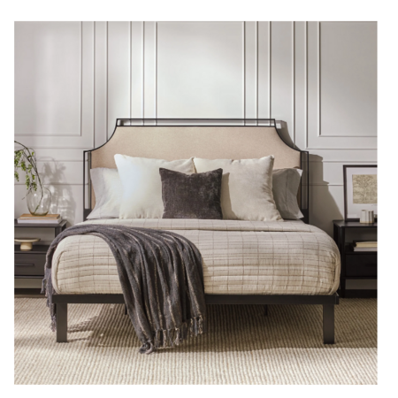 Walker Edison Traditional Metal Upholstered Queen Bedframe - Tan/$100, Grey/$101