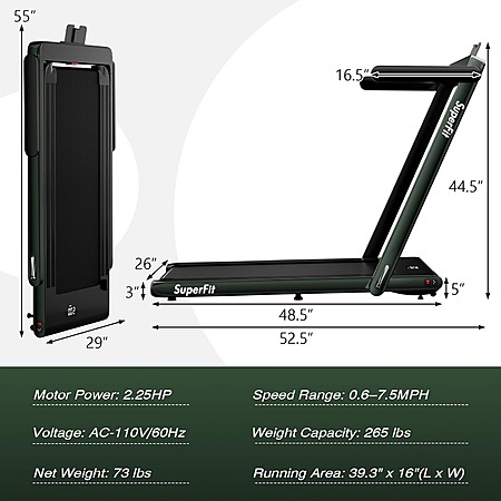 Prime Members: Superfit 2-in-1 2.25HP Folding Treadmill w/Remote Control, APP Control and LED Display (Various Colors) $128 + Free Shipping