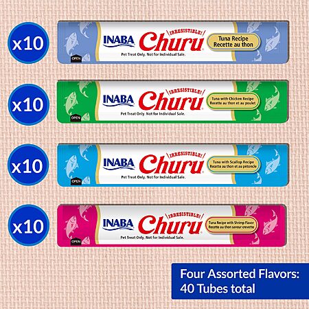 40-Count 0.5-Oz INABA Churu Lickable Cat Treats (Tuna & Seafood Variety) 2 for $30.18 ($15.09 each 40-Pack) w/ S&S + Free Shipping $35.18