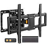 | Product Description: | MountFTV Full Motion TV Wall Mount Bracket with Tool-Free Tilt for 42-90 inch TVs, Max 600x400mm, Holds up to 132 lbs Description: The Full Motion TV Wall Mount Bracket is engineered to support 37 to 90 inch flat and curved screen TVs, offering exceptional adjustability for the perfect viewing experience. This versatile TV mount features a Tool-Free Tilt function, allowing you to easily adjust the tilt from -15° to +5° to minimize glare without needing any tools. It also offers a swivel range of ±45° to ensure optimal viewing from any angle. With an extension capability of 2.9 inches to 16.61 inches from the wall, this TV mount allows for flexible positioning to suit your space. The TV wall mount is compatible with wood studs spaced 112" to 16", as well as concrete and brick walls. It includes all necessary anchors and hardware for secure installation and offers a post-installation adjustment capability of ±3° for precise leveling, ensuring a perfectly aligned TV setup. Features: 1.Heavy-Duty Support and Universal Fit The MountFTV full motion TV wall mount is designed for 42″–90″ TVs, supporting up to 132lbs (60KG). It fits TVs patterns from 200x100mm to 600x400mm. Our certified bracket outperforms other standard mounts with 30% thicker articulating arms and a reinforced 17.1 x 11.14" wall plate, perfect for 4K displays in living rooms, home theaters, or commercial setups. 2.Full Motion Adjustability for Optimal Viewing Articulating tv wall mount can enjoy fluid 45° left/right swivel and tool-free tilt adjustments of 5° backward and 15° forward. The solid hinge provides 30% smoother rotation than competitors, extending 16.28" for ideal viewing angles while maintaining a slim 2.86" retracted profile. ±3° leveling accuracy ensures a perfect setup for gaming or entertainment. 3.30-Minute Friendly Installation Easily installs on 12"/16" wood studs, concrete, or brick walls in just 30 minutes. The one-piece design eliminates welding points, requiring no special tools. Includes a detailed instruction manual, laser-etched wall template, and premium corrosion-resistant hardware, allowing even first-time installers to achieve professional results. 4.Cable Management & 4X Load Non-DeformationTest The wall plate includes openings to mount over standard electrical boxes, making cable management easy and clean. Keep your entertainment center organized without sacrificing full motion functionality. Our Full Motion TV wall mount bracket ensures secure TV mounting while adding a sleek and tidy look to your space. 5.Commercial-Grade Durability and 5-Year Guarantee Featuring seamless articulation joints and an anti-sag locking mechanism, this mount provides rock-solid stability for movie nights and intense gaming sessions. Backed by MountFTV's industry-leading 5-year warranty, ensuring long-lasting durability. Product Specifications: Color: Black Material:Alloy Steel Swivel Range: ±45° Tilt Range: +5° / -15° Level Adjustment: ±3° Extension: Up to 16.28" Profile: 2.86" from the wall TV Size Compatibility: Fits 42" to 90" TVs Weight Capacity: Supports TVs up to 132 lbs (60 kg) Wall Plate: 17.1x11.14 inch Velcro Straps: 5 included for cable management Spirit Levels: 2 integrated spirit levels for precise installation TV Mounting Standards: Supports TV mounting holes from 200x100mm to 600x400mm Mounting Types: Compatible with wood studs (12" and 16" on center), concrete, and brick walls Package Inclueds: 1 x TV Wall Mount 1 x Standard mounting hardware 1 x User manual 1 x 2-axis magnetic bubble level 5 x Cable management straps |