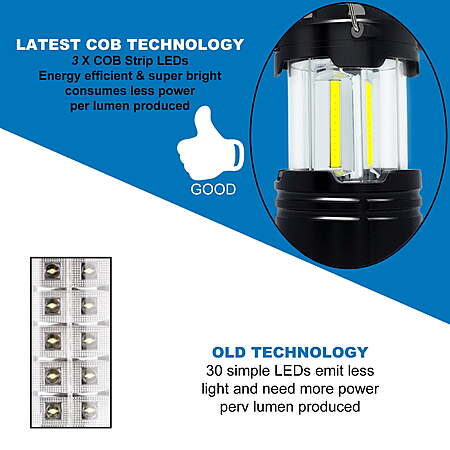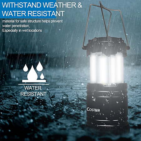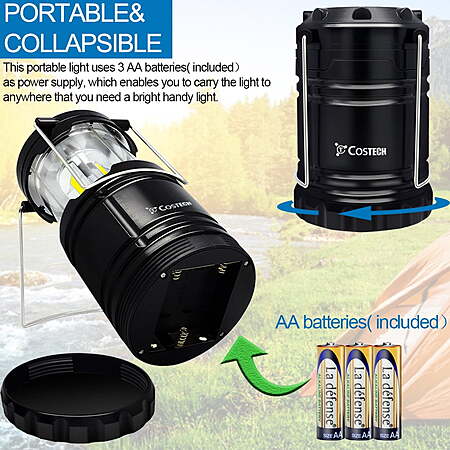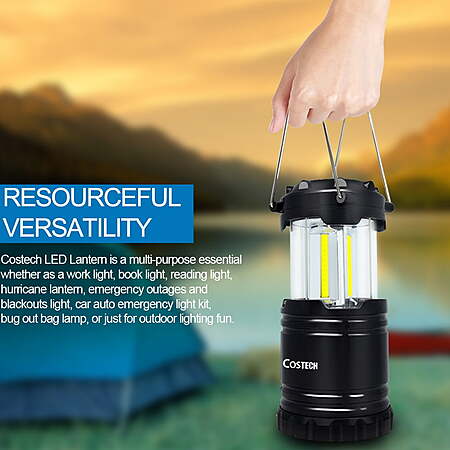 | Product Description: | Costech LED Camping Lantern β Reliable Light Wherever You Go Stay bright and safe on every adventure with this compact, waterproof, and powerful lantern. Built for weekend camping, late-night BBQs, and unexpected power outages. Key Features π Bright & Even Light: 350 lumens with 360Β° coverage. COB panels provide consistent, glare-free illumination. β¬οΈ Pull-Open Control: Pull up to turn on and increase brightness; push down to turn off. No tiny buttons to fumble. π Palm-Size & Lightweight: Folds down to a compact form and weighs about 0.61 lb for easy packing and carrying. πͺ Hang or Carry: Dual folding handles let you hang it in tents, on branches, or carry by hand. πͺ Durable & Water-Resistant: Upgraded ABS housing with IPX4 resistance to splashes, plus impact and corrosion resistance. π Long Runtime: With fresh AA batteries, provides up to 50 hours of light for trips or emergencies. Versatile Uses βΊ Camping, hiking, fishing, and backyard gatherings β‘ Emergency lighting during power outages and storms π Spare light for car, RV, garage, or home Whatβs in the Box π¦ 4 Γ LED Camping Lanterns π 12 Γ AA Batteries π 1 Γ User Manual Note: Runtime and brightness may vary with battery quality and ambient temperature. Costech Electronics 350 Lumens Portable Camping Lantern lizes the latest COB lighting technology for enhanced illumination Provides 360-degree ultra-bright light, ideal for various uses such as work, reading, and outdoor activities Portable and collapsible design for easy transport and storage Powered by 3 AA batteries (included) for convenient use anywhere Constructed from durable, military-grade plastic for long-lasting performance |