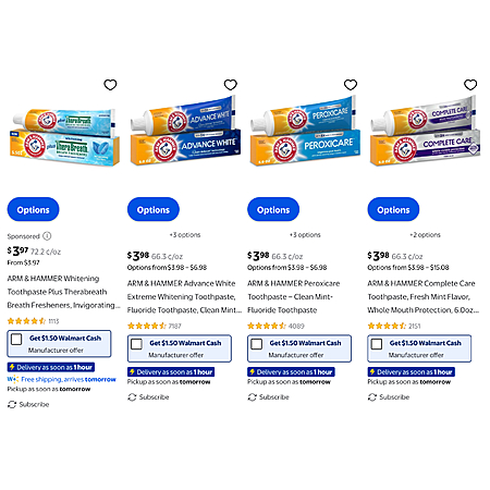 $3.98 + $1.50 Walmart Cash (limit 5) - Arm & Hammer Toothpaste (4 options)