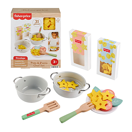 $14.49 + $5 Walmart Cash - Fisher-Price Pots & Pasta Chef Set, Cooking Toy with Wooden Food for Pretend Play, 31 Pieces