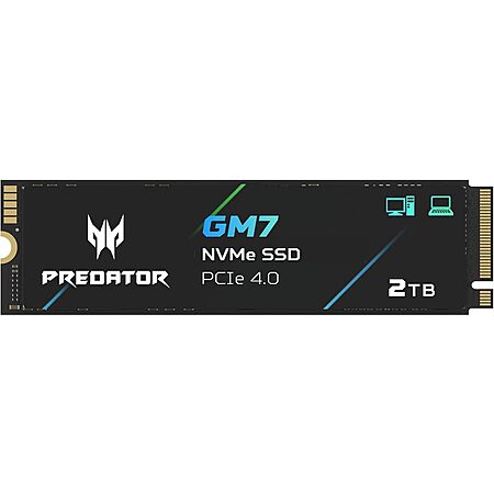 acer Predator GM7 2TB SSD: M.2 2280 PCIe Gen 4 x4 NVMe 2.0, Read Speed Up to 7400 MB/s, Internal PC Solid State Drive for Laptop, Desktop and PS5 - BL.9BWWR.119