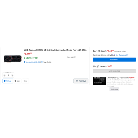 Micro Center (In-Store Pickup only): PowerColor AMD Radeon RX 9070 XT Red Devil Overclocked Triple Fan 16GB GDDR6 PCIe 5.0 Graphics Card $649.99