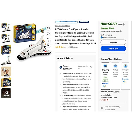 Versatile Space Toy: LEGO Creator 3 in 1 set includes a space shuttle that can be rebuilt into an astronaut figure or a spaceship.