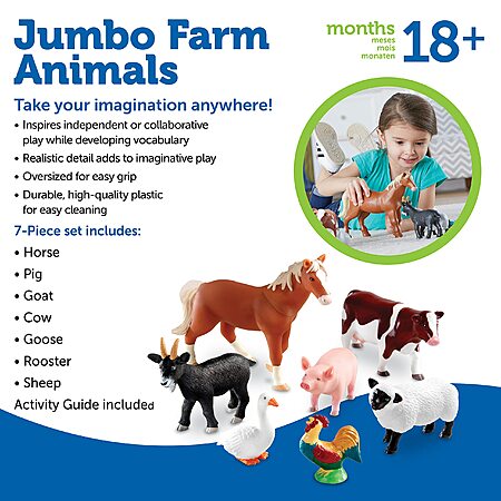 - COMPLETE FARM COLLECTION - Includes seven detailed animals (horse, cow, sheep, goat, pig, rooster, and goose) with an educational fact sheet to expand learning opportunities as your child grows.