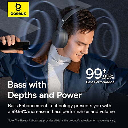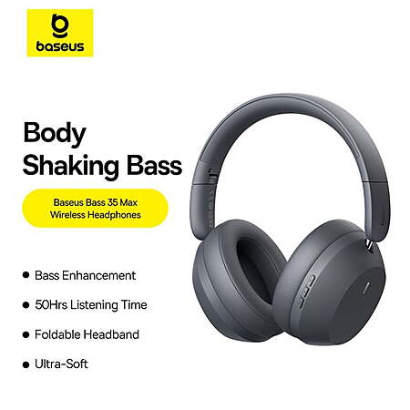 $13.99*:Baseus Bass 35 Max Over-Ear Wireless Headphones with Bluetooth 5.3, 50H Playtime, Deep Bass, Foldable & ENC Mic for Clear Calls, Gray