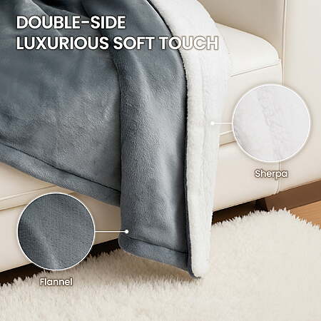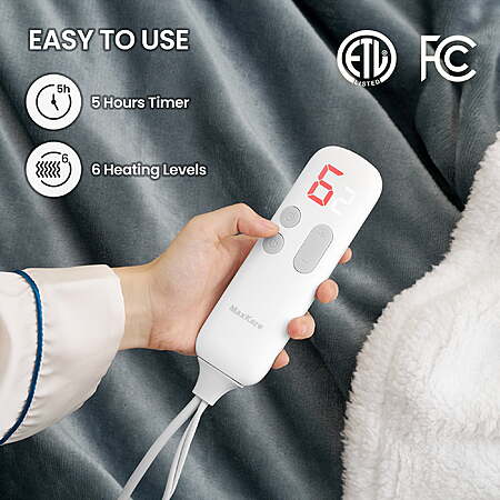 Model: MaxKare 50" x 60" Electric Throw Blanket with 6 Heating Levels & 1-5H Auto-off, Machine Washable Flannel & Sherpa, Gray & White