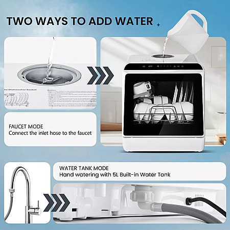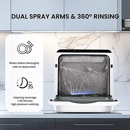 Simzlife Portable Dishwashing Machines Countertop, 4 Place Setting, Dishwasher with 6 Washing Programs, Built-in Water Tank, Air-Dry Function $229.99
