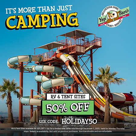 Hey there Boo Boo....Jellystone Park Camp-Resort have 50% off RV and tent sites when you book a new reservation using the Black Friday code below for stays Monday-Thursday. Located in Southern Utah, Jellystone Park Camp-Resort offers family camping and RV resort near St. George and Zion National Park. Every reservation includes access to their Water Zone and floating obstacle course.