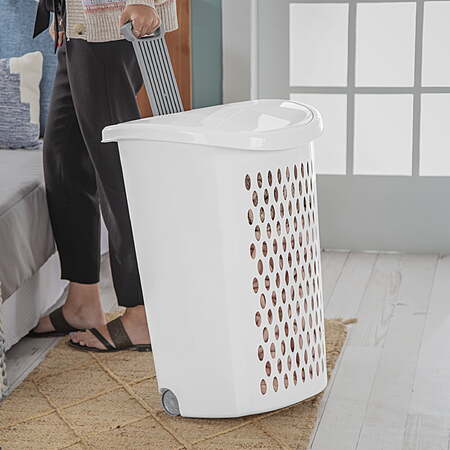 Sterilite Ultra Wheeled Hamper, Plastic Laundry Hamper with Handle, White $15.88