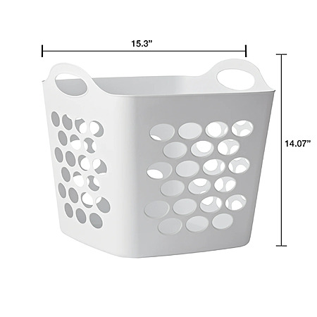 Mainstays Plastic Laundry Hamper, Flexible Square, Breathable with Handles, White