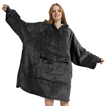 Unique Design: One size fits all, the snaps on the hood for a more comfortable fit. A big pocket to hide the TV remote, phone, snacks, and more with ease of access. You can pull your hands inside and take your warmth wherever you go.