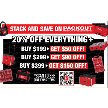 Fastner's Inc.'s Black Friday Flyer is out. Sale starts 11/24/25 and runs through 12/01/25 They will have a sale on Milwaukee Packout. It's 20% off everything PLUS it's stackable with the current BMSM promo: