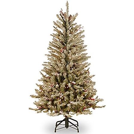 $61.09: National Tree 4.5 Foot Dunhill Fir Slim Tree with Snow, Red Berries and Cones, Hinged (DUF-301-45) at Amazon