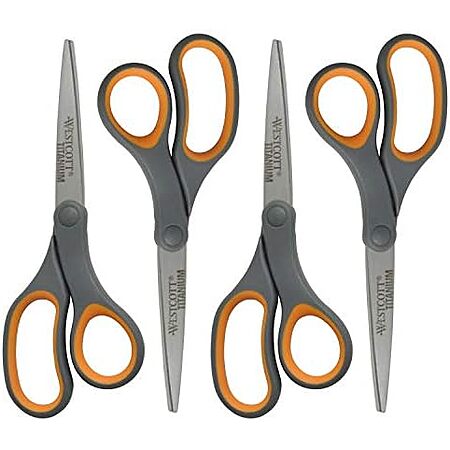 Model: Westcott Titanium Bonded Scissors, Soft Handle, 8", Straight, Gray/Yellow, 4-Pack
