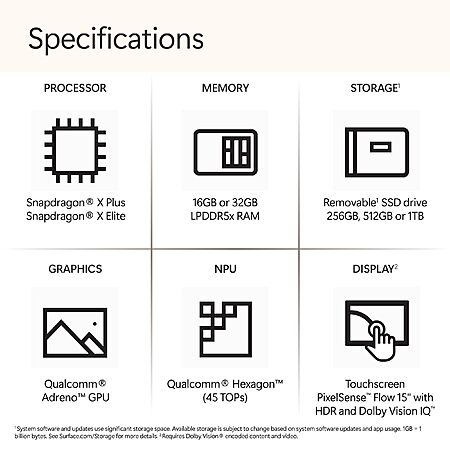 Model: Microsoft Surface Laptop 7 15-inch Touchscreen Qualcomm Snapdragon X Elite X1E-78-100 16GB RAM 1TB SSD, Qualcomm Adreno Graphics in Platinum