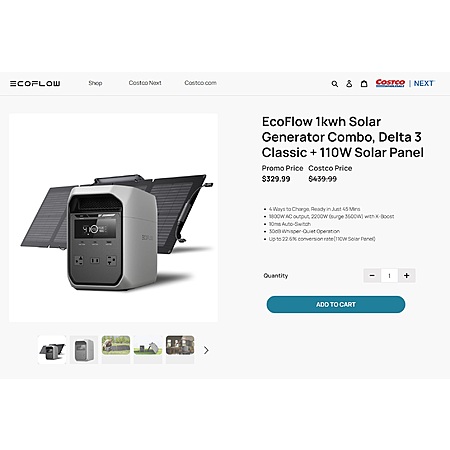 EcoFlow 1kwh Solar Generator Combo, Delta 3 Classic + 110W Solar Panel $329.99