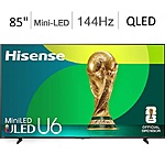 Model: Hisense 85" Class U6 Series Best Value Mini-LED 4K UHD Smart Fire TV (85U65QF, 2025 Model) - QLED, Native 144Hz, HDR10+, Dolby Vision IQ, Dolby Atmos, Built-in Subwoofer, Game Mode Pro, Alexa Built In