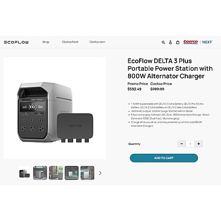 Costco Next has Ecoflow Delta 3 Plus (1kiW) + 800W Alternator Charger on sale promo price down to $592.49 !