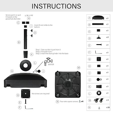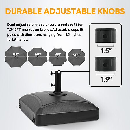 - Easy to install: The base comes with an installation manual, which is easy to understand and install. With 2 tightening knobs to ensure a secure fit with umbrellas poles.