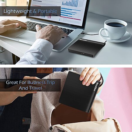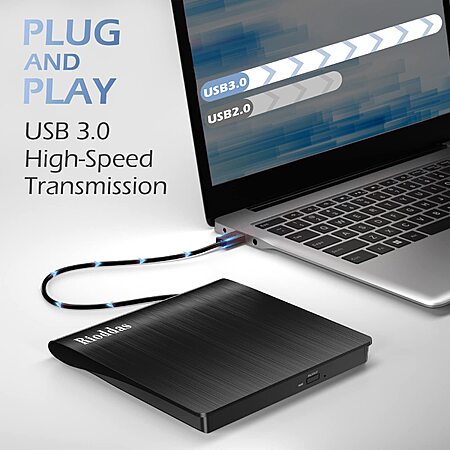 Rioddas External CD/DVD Drive for Laptop, USB 3.0 CD DVD Player Portable +/-RW Burner CD ROM Reader Writer Disk Duplicator Compatible with Laptop Desktop PC $15.79