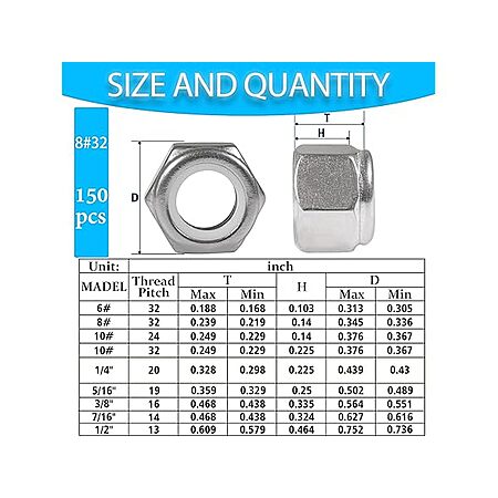 150 Count 8#32 Stainless Steel Lock Nuts 304(A2-70)/// $5.00 w/ Free Prime Ship Woot