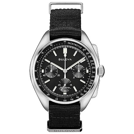Model: Bulova Men's Chronograph Lunar Pilot Archive Series Black Polyester Strap Watch 45mm - Black