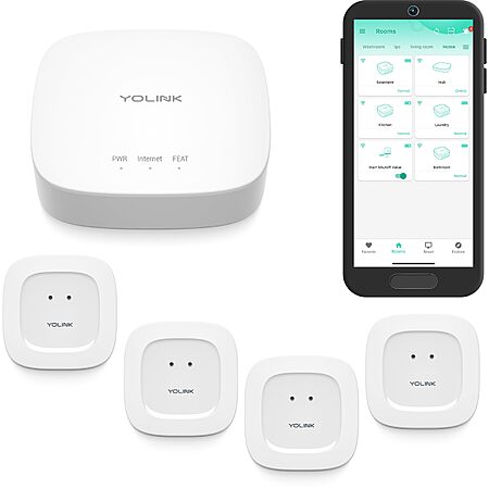 YoLink Water Leak Starter Kit: Hub + 4 Leak Sensor 1 (Silent), LoRa Long-Range, App/SMS/Email Alerts, D2D Offline Triggers, 2 AAA Up to 5-Year Battery