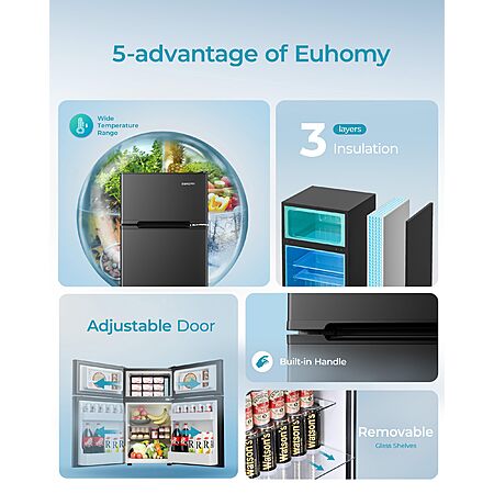 EUHOMY Mini Fridge with Freezer, 3.2 Cu.Ft Mini Refrigerator $169.99