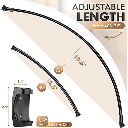 Prime Members: 40" - 72" Bonpally Curved Shower Curtain Rod (Black) $12.74 + Free Shipping