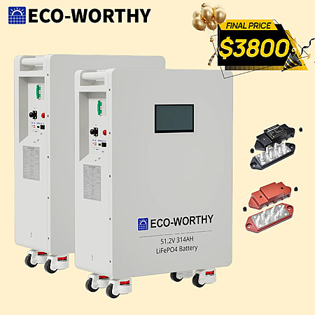 2-Pack ECO-WORTHY 16kWh 51.2V 314AH LiFePO4 Battery Backup + Busbar $3800 + Free Shipping