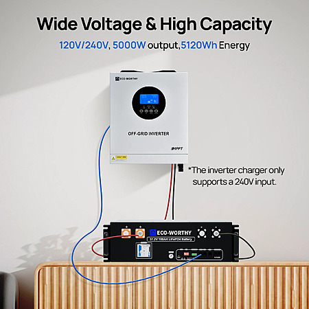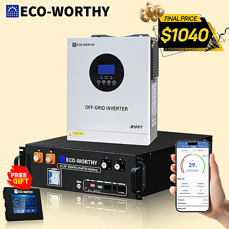 Eco-Worthy 48V 5.12kWh 100Ah Lithium LifePO4 Battery + 5KW 48V Off-Grid Inverter + Battery Monitor $1040 + Free Shipping