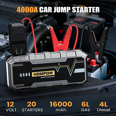 HOMPOW 4000A 16000mAh 12V Car Battery Jump Starter (for 6.0L Gas & 4.0L Diesel Engines) $34.19 + Free Shipping