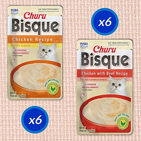 12-Pack 1.4oz. Inaba Churu Bisque Puree Food Pouch for Cats (Chicken Variety)