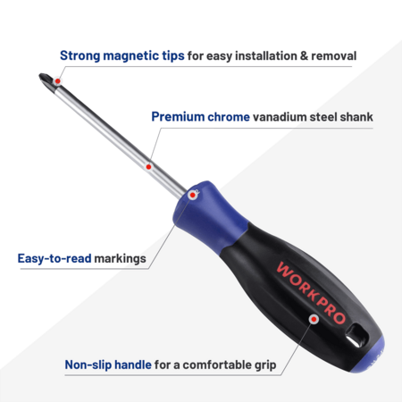 WORKPRO 6-Piece Magnetic Screwdrivers Set with Organizer, Flat Head/Slotted/Phillips/Torx Screwdriver Tools Set, Chrome Plating CR-V Shanks, Non-Slip Handle