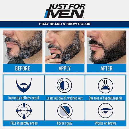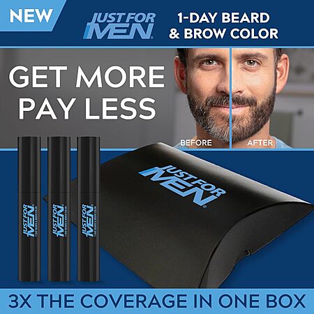 3-Pack Just for Men Temporary Beard & Brow Color: 1-Day Wear, Up to 30 Applications (various colors) $24.20 ($8.06 each) w/ S&S + Free Shipping w/ Prime or on $35+