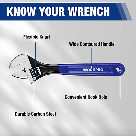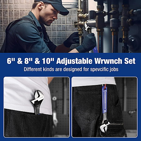 Model: WORKPRO 3-Piece Adjustable Wrench Set, 6in, 8in & 10in Wrenches with Ergonomic Grip for Home, Garage, Workshop