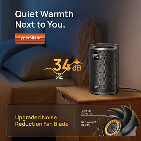 | Product Description: | ☀️Instant Warmth in 2 Seconds With a powerful 1500W output and an upgraded 4mm PTC heating element, DREO's heater delivers 54% more airflow and rapid, even heat distribution. Its heating range is 200% larger than conventional heaters, wrapping you in warmth just 2 seconds after powering on—no more waiting in the cold. ☀️Elegant Design, Built for Safety This heater blends seamlessly into any space with its sleek design and compact form factor. Equipped with a safety plug and flame-retardant materials, it delivers enhanced reliability. Tip-over protection and a child lock ensure safety for your family, children, and pets. Powerful yet secure warmth—providing care for everyone around you. ☀️Quiet Comfort, Warmth Uninterrupted Designed with a DC motor and biomimetic fan blades, this heater operates at just 34dB—as gentle as a breeze rustling through leaves, creating a serene ambiance. With a 1-12H timer, it ensures undisturbed warmth whether you're focused on work or drifting into sleep, making it ideal for bedrooms, nurseries, and study spaces where tranquility meets comfort. Let its silent presence be your most reassuring companion, wrapping you in warmth wherever you go. ☀️Break Free from Traditional Heat Settings, Customize Your Comfort Unlike ordinary heaters with limited Low/Med/High presets, Dreo heaters put true temperature control in your hands. With wide-range adjustability (41°F~95°F) and 1°F precision, it delivers exactly the warmth you need—whether it’s a gentle morning warmth on winter days or steady heat for late-night reading. No more compromises: Every degree, perfectly tuned. ☀️Modes for Every Scenario Choose from three different heating levels, enjoy up to 40% energy savings with ECO Mode, or use it during summer thanks to its Fan Only Mode, this heater has it all. 1500W Hyperamic™ 2s Instant Heat Shield 60° 8-Layer Ultra Safety HyperSilent™ 34 dB Whisper-quiet 3 Versatile Modes, 3 Heating Levels 41–95°F Wide Range in 1°F Increments Up To 40% Energy Savings Sleek Design in a Portable Size What's Included: DREO Space Heater x 1 Quick Start Guide x 1 User Manual x 1 |