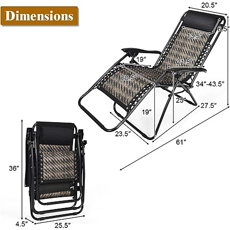 Prime Members: Patio Rattan Zero Gravity Lounge Chair w/ Removable Head Pillow (Grey) $27 + Free Shipping