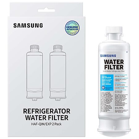 SAMSUNG Genuine Filters for Refrigerator Water and Ice, Carbon Block Filtration for Clear Drinking Water, HAF-QIN-2P, 2 Pack for $44.99, reg $89.99