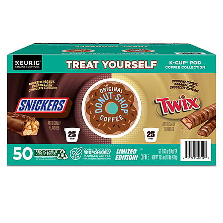 50-Count The Original Donut Shop Snickers and Twix Coffee Variety Pack Flavored K-Cup Coffee Pods for