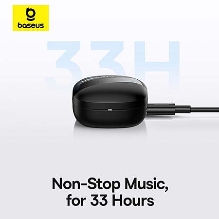 Baseus Buds Wired Mic, Wireless Earbuds 33 Hours, 20 Hz In-Ear Earphone, Black