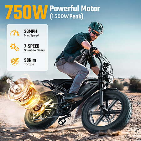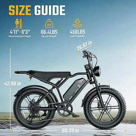| Product Description: | TST Mountain E-Bike – Max Speed 28-32MPH, 750W Peak 1500W Motor, 60-Mile Range, 48V/15Ah Battery, APP-Controlled Riding, Suit for ages 14-55. Key Features: Recommended Road Type: Off-road. APP connection: Sync bicycle information and register your warranty with Orbital App. View various data. 20x4-inch wide tires: Mountainous-terrain wide tires with strong grip to conquer mountainous terrains. LED headlight: Super strong beam to illuminate the way ahead. Taillight:Bright rear light to avoid driving risks. LED display: View information such as speed, battery level, pedal assist level and mileage. Comfort seat: Extended comfort seat to improve riding comfort. SHIMANO 7-speed transmission system: Easily switch riding status. Ergonomic design: With upward handlebars, non-slip grips and extended textured saddle, it effectively reduces wrist pressure and prevents discomfort during long rides. 750W Peak 1500W brushless geared hub motor: Super power peak 1500W, up to 90Nm torque, with strong acceleration, up to 28MPH. Full Suspension System: HovGtrs electric bikes are equipped with front and rear suspensions for improved comfort and handling. 48V/15AH Battery: HovGtrs batteries have dual temperature protection for charging and discharging, and have over-current, short-circuit, over-voltage and under-voltage protection. In power-assisted mode, the range can reach 60 miles. E-Bike Highlights: Orbital Sports APP ecord every trip you make 750W Peak 1500W powerful motor, 48V/15Ah battery, maximum driving speed up to 28-32MPH 20" x 4.0" Fat tire Ebike Double suspension makes your journey easier Super strong beam headlights illuminate the road ahead Tech Specs: Motor: 750W Peak 1500W Brushless Gear Hub Battery: 48V/15AH Lithium-ion (UL 2849 certified) Max Speed: 28-32MPH (PAS Mode) Range: 70 -100 Miles (PAS Mode) Charging Time: 4-6 Hours Tire: 20" x 4" Ebike Size: 64.9" x 26.6" x 45.9" Suggested Rider Height: 4'11"-6'3" Torque: 90N.m Sensor: Cadence Sensor Brakes: Hydraulic brakes Throttle: Throttle on demand Gears: 7-Speed Shimano Display: LCD Max Load: 450 lbs Pedal Assist Level 0~5 Level Pedal Assist Frame: Aluminum Alloy Weight: 71.87lbs (Including Battery) How to unlock the bicycle speed limit: 1. First, hold the handbrake on the left side of the bike. 2. Press the "+", "-" and "Power" buttons simultaneously until the e-bike turns on. 3. Press the “”+“” and “-”buttons simultaneously until the P1 logo appears on the left side of the screen. 4. Press the “Light key” button to adjust to P3 mode. Why Choose This E-Bike? Faster – Cut travel time with 28-32MPH speed Ride Farther – 70-100 mile range Ride Smarter – Phone app tracks every journey Super Shock Absorption – Powerful double shock absorption makes your riding more comfortable Note: Free 6-month warranty to protect your rights If you need any help, please contact us directly in the platform background. We are very willing to serve you. |