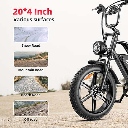 | Product Description: | Ready to tackle rugged off-road trails? The AMYET V9-G60 fat tire electric mountain bike for adults delivers speed and comfort, whether you're conquering steep hills or exploring challenging off-road conditions. Powered by 1000W brushless motor(peak 1500W) , it easily reaches 32MPH(unlock the bicycle speed limit&PAS 5 Mode). With the 48V 20AH battery, you can ride up to 30+ miles in pure electric mode or 70+ miles in pedal-assist mode. The 20" x 4" fat tires provide exceptional traction on snow, sand, and rugged terrains. The dual suspension system ensures a smooth ride, while 7-speed Shimano gears and mechanical disc brakes offer seamless shifting and reliable stopping power. With a complete lighting system for added safety, the V9-G60 is 90% pre-assembled, making setup easy and hassle-free. Eco-friendly and cost-effective, this e-bike offers a fun, efficient way to explore off-road trails. G60 Ebike Specification: Bicycle Type: Electric Mountain Bike Color: Black/Brown/Purple Material: Chrome Molybdenum Steel Frame Motor: 1000W(Peak 1500W) Speed: 32MPH(UNLOCK&PAS 5 Mode) Battery: 48V 20AH Lithium Ion Battery Battery Protection: BMS, Short-Circuit, Overcharge, Overcurrent Protection Charge Time: 7-8 Hours Meter: Digital LCD Display 5 Working Modes: Normal Bike / Assisted Bike / E-bike / Booster Mode / Cruise Control Mode Mileage: 30 Miles (Pure Electric Mode) / 70 Miles (Pedal Assist Mode) Max Load: 330 lbs Brake: Front and Rear Mechanical Disc Brakes Shock Absorber: Dual Suspension System Gear: 7-Speed Shimano Geardiv> Tires: 20" x 4" Fat Tires Size: 64.96" x 27.56" x 43.30" Recommended Height: 5'6" - 6'6" Recommended Use: Off-road Adventures Ebike Weight: 83.79 lbs Assembly Method: 90% Pre-assembled Certificate: CE, RoHS, FCC, UL, GCC Charger: AC-DC 54.6V 2A, 100-240V AC How to unlock the bicycle speed limit: 1.Turn on the bike's display. 2.Hold "+" and "-" for 3 seconds. 3.Press "M" to find P08. 4.Press "+" to set value above 50. 5.Hold "+" and "-"" for 3 seconds to save and exit. Peak 1500W Brushless Motor: The AMYET G60 ebike is equipped with 1000W motors(peak 1500W) , delivering powerful performance for effortless climbs and off-road adventures, easily reaching 32MPH. Large Capacity 20AH Battery: 48V 20AH detachable battery for up to 30 miles in pure electric mode and 70 miles in pedal-assist mode, with 7-8 hours fast charging. 7-Speed Shimano Gears: 7-speed shifting offers off-road power and adaptability, making it perfect for challenging field conditions. 5 Working Modes: Choose from E-bike, Assisted Bike, Normal Bike, Booster, and Cruise Control modes to tackle rugged off-road trails. Fat Tires (20" x 4") e Bike: Excellent traction and stability on snow, sand, and rugged off-road trails. Dual Suspension System: Front and rear shock absorbers provide better control and comfort on rough and uneven roads. 330 lbs Load Capacity: Designed for adult e-bike riders (5'6"–6'6"), this high-carbon steel frame supports up to 330 lbs. Digital LCD Display: Real-time data on speed, battery level, and trip distance, equipped with a USB port to charge your phone. Complete Lighting System: Includes a headlight, rear turn signal, and brake light for increased visibility and safety. Pre-assembled: 90% of the assembly is completed for a hassle-free setup. 12 MONTH WARRANTY: This ebike is covered by 12-month warranty. If you have any question about AMYET product or service, please feel free to contact us. We will reply you within 24 hours and do our best to solve your question. |