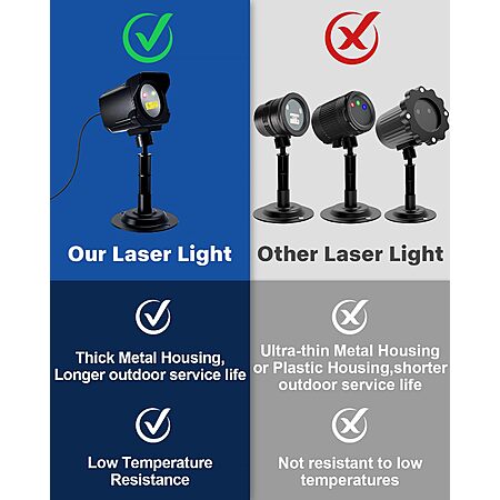 - 【Metal Construction for Superior Heat Dissipation】 Designed with durable metal housing, this laser light efficiently dissipates heat, making it ideal for extended indoor and outdoor use. It prevents issues like overheating, reduced brightness, and color distortion. Tested to reduce failure rates by 40% compared to traditional products, it ensures long-lasting performance.